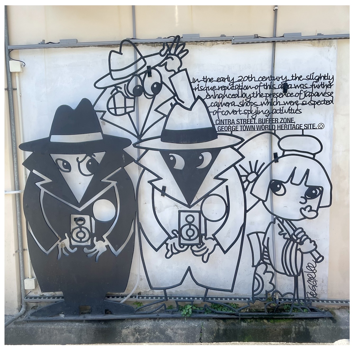 街中のあちこちにワイヤーアートやウォールアートがあるので